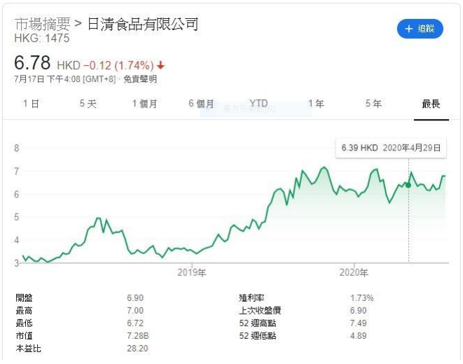 香港,所以日清股價仍會硬朗,如果明年疫情回落的話,生意和股價才會有所下調。